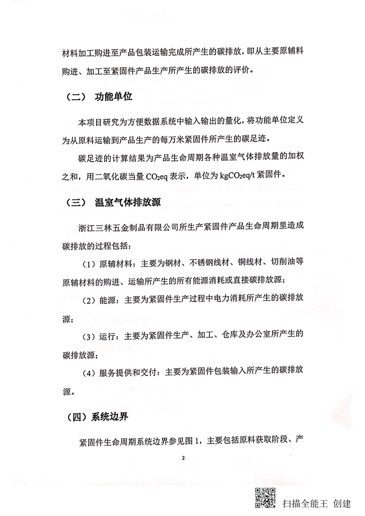 浙江三林五金制品有限公司紧固件碳足迹报告