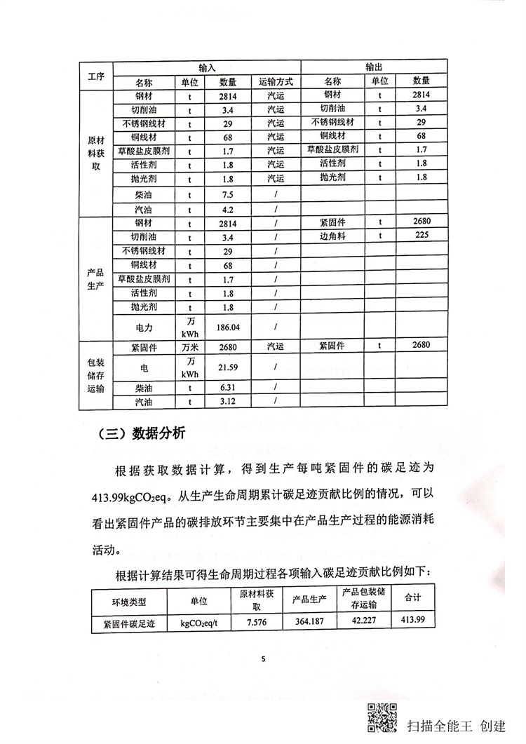 浙江三林五金制品有限公司紧固件碳足迹报告